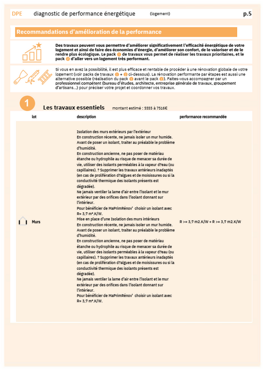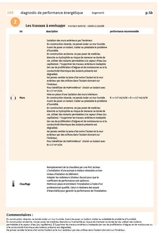 Les préconisations du DPE (2 scénarios)